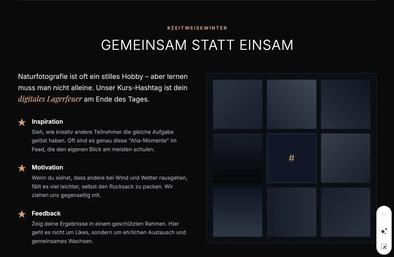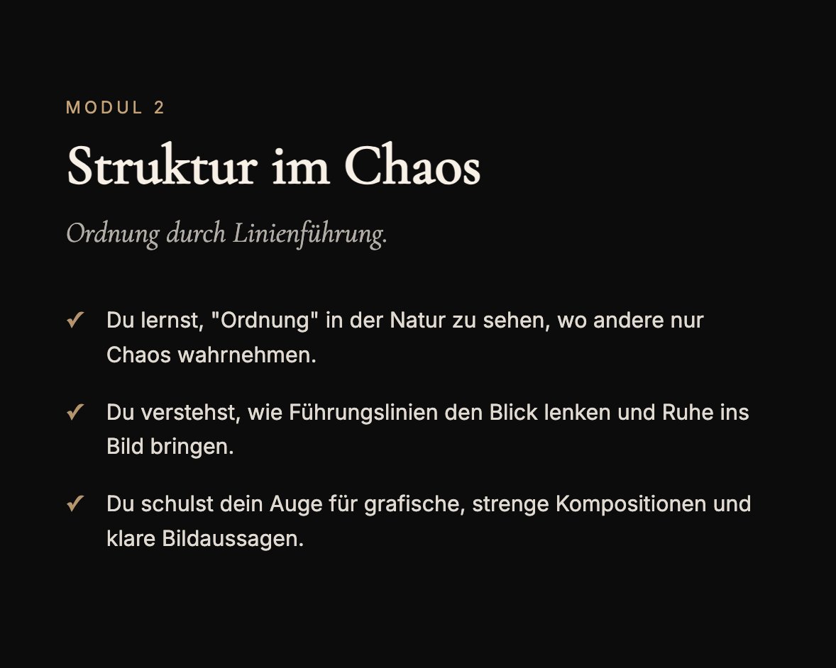 Du bekommst professionelle Lehrvideos, spannende Foto-Aufgaben und die Freiheit, alles dann zu machen, wenn es in dein Leben passt.